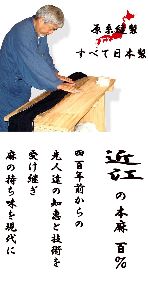 ・日本製最高級(近江の麻100%本麻)甚平じんべい(近江ちぢみ滋賀県産)