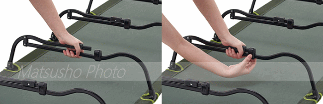 LOGOS独自の脚部フレーム構造により女性でも楽に組立てる事が可能です。組立て時