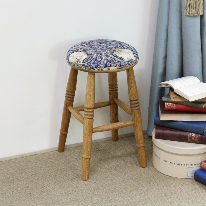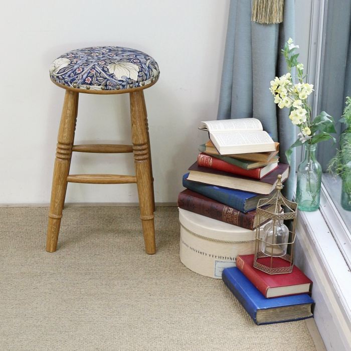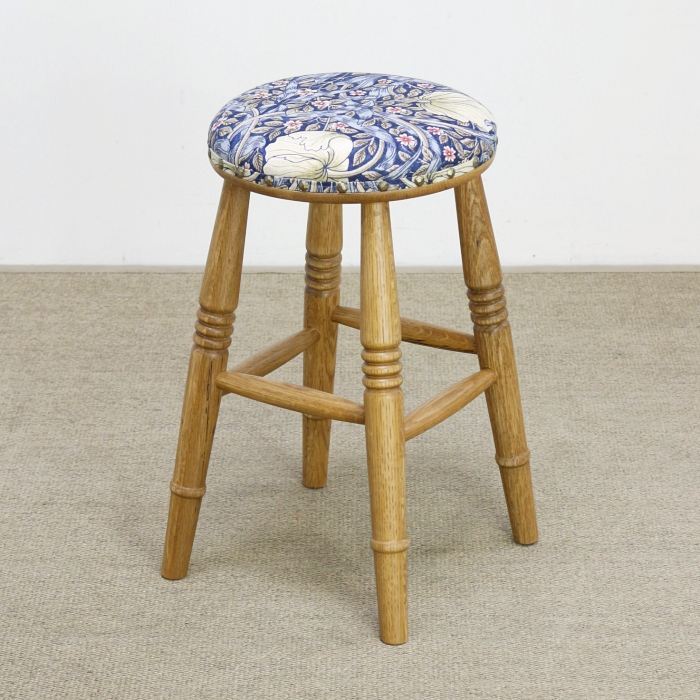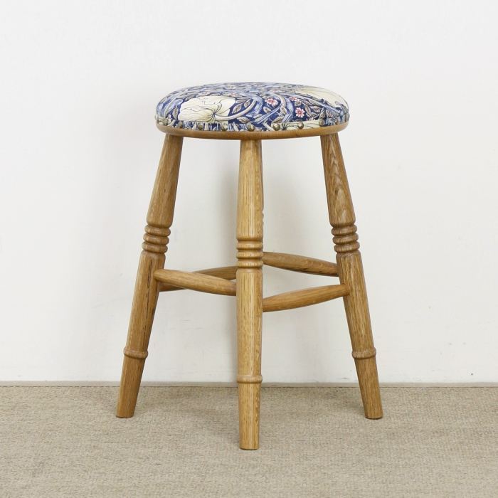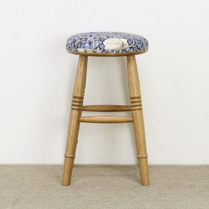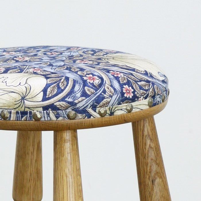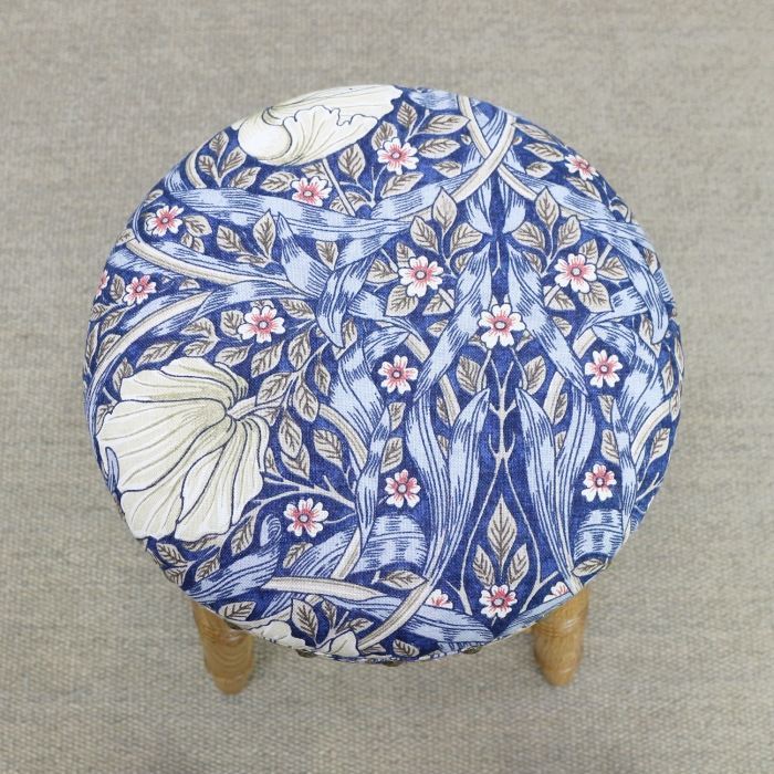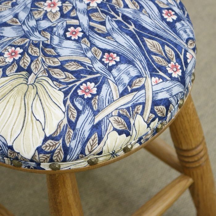 ウィリアムモリスの美しいファブリックを座面に使用した、当店オリジナルの素敵なロースツールのご紹介です。