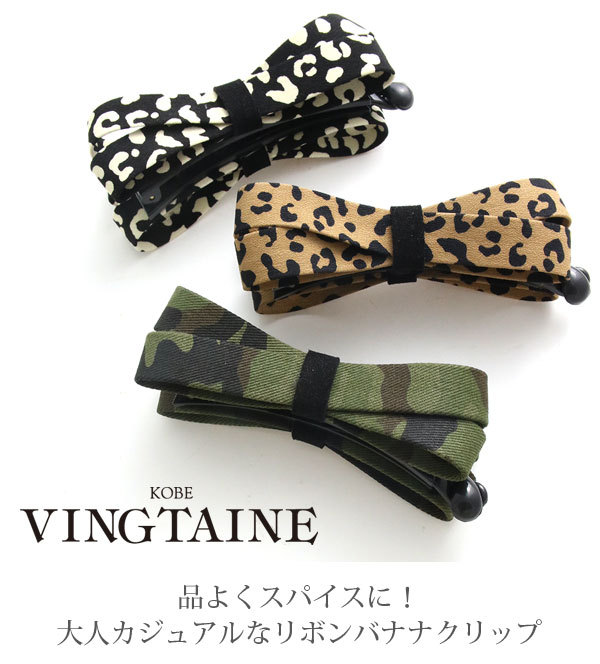 ヘアクリップ,ヘアアクセサリー,ひょう柄,アニマル柄,レオパード,カジュアル,エレガント,上品,バナナクリップ,vingtaine