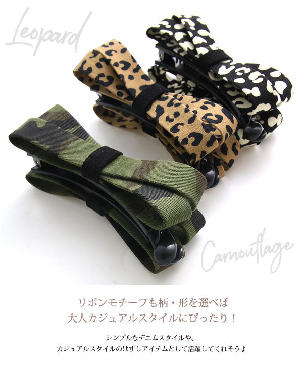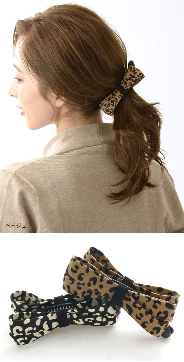 バナナクリップ リボン アニマル柄 (M) ヘアアクセサリー 簡単まとめ髪 大人 デイリー ヘアクリップ ヘアアクセ かわいい H-185