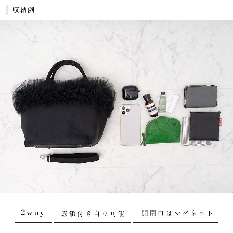 お財布、スマホ、日傘、化粧ポーチなど、ちょっとした小物を持ち歩くのに最適です。