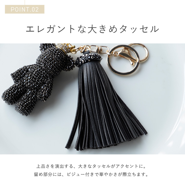 バックチャーム くま ビジュー キラキラ ベア クマ 熊 タッセル フリンジ キーホルダー チャーム バッグアクセ バッグチャーム vns3ac-bc337 aroco/アロコ