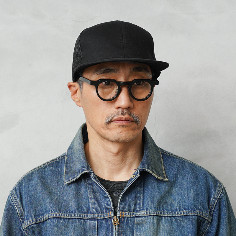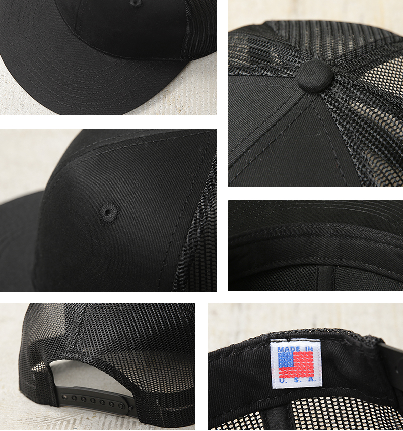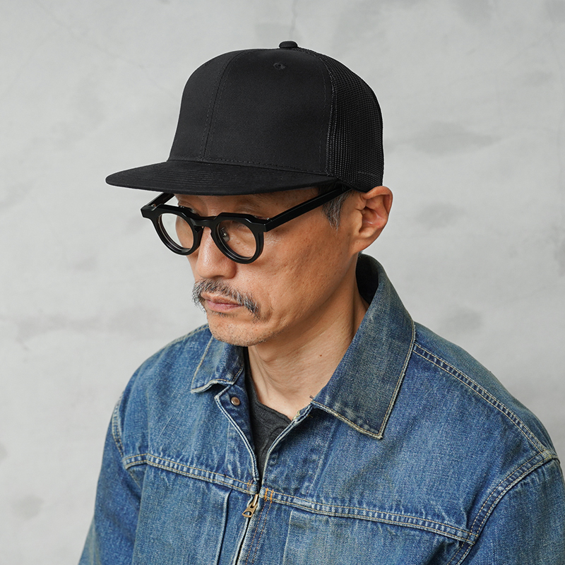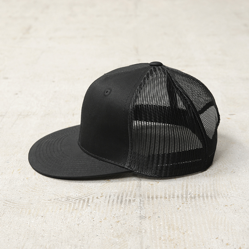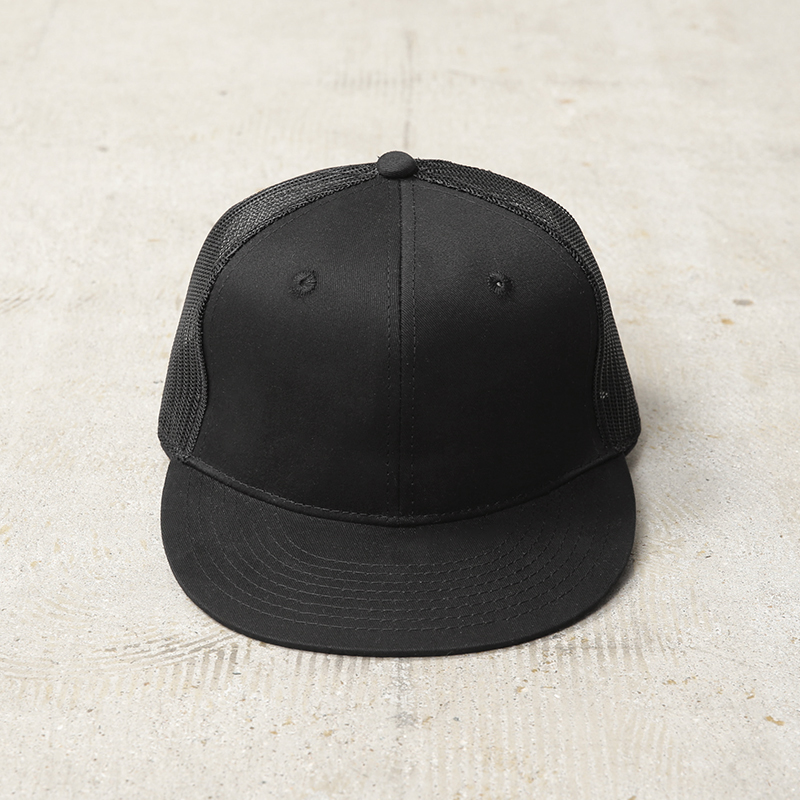 5パネルのメッシュキャップで、ロゴや文字のないシンプルさとBLACKカラーが使いやすい一品です。