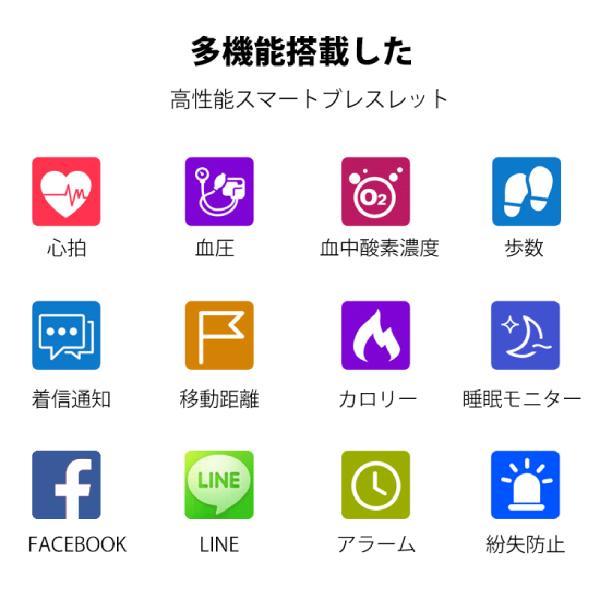 スマートウォッチ iphone 対応 android 対応 血圧測定 心拍計 歩数計 IP67防水 facebook line 着信通知 スマートブレスレット レディース メンズ 日本語説明書