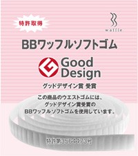 グッドデザイン賞受賞の締めつけ感の少ないBBワッフルソフトゴムを使用しました。