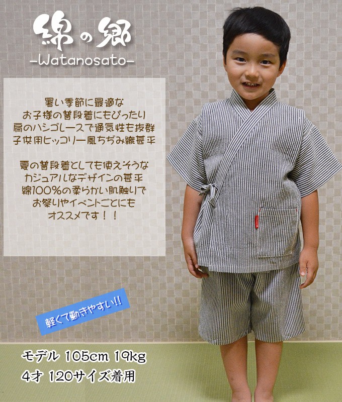 ★日本製・子供用ヒッコリー風ちぢみ織甚平 子供甚平