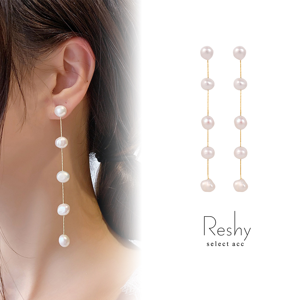 レディース アレルギー対応 ロングピアス 揺れる 5連パール チェーン 華奢 5粒 キャッチ ボール s925 上品 アクセ エレガント プチプラ