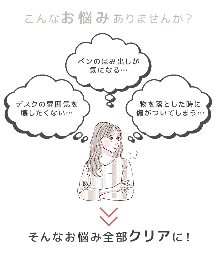 カレンダーや予定表、メモなど挟めるクリアタイプのデスクマットです。