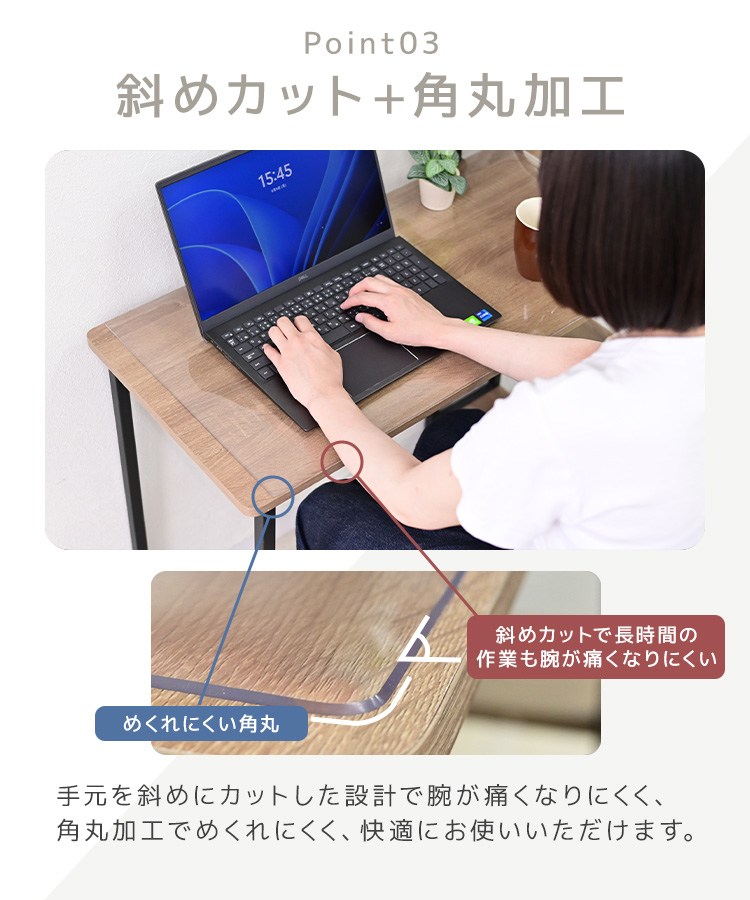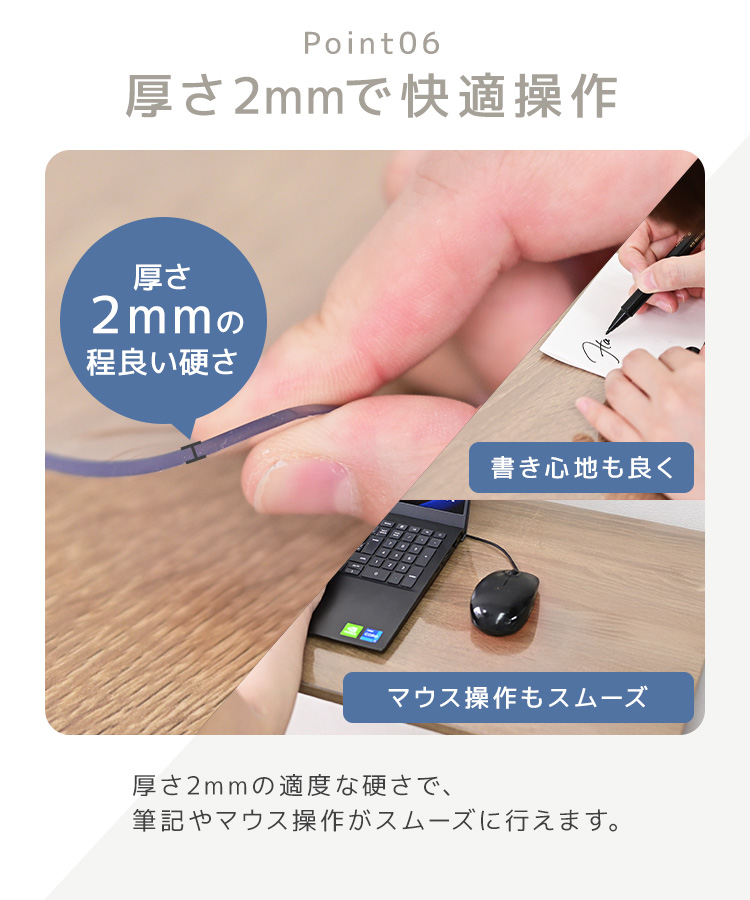 また、角丸加工によりデスクに密着し、めくれにくいです。