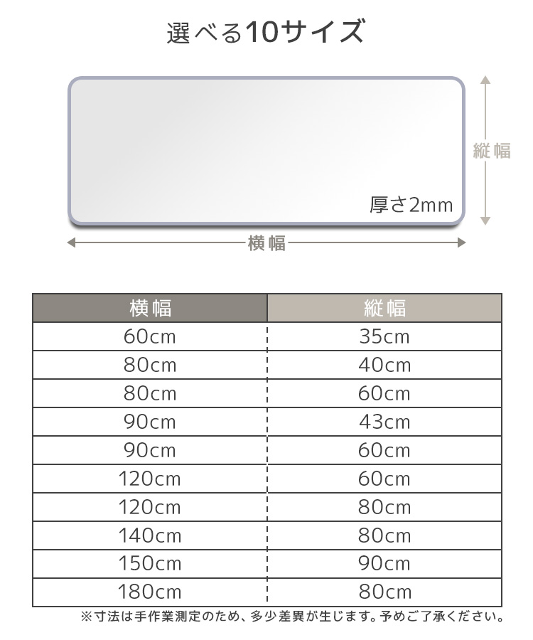 10種類のサイズ展開で、簡単にカットすることもできるので、傷防止用マットとしても最適です!
