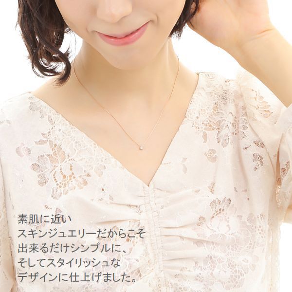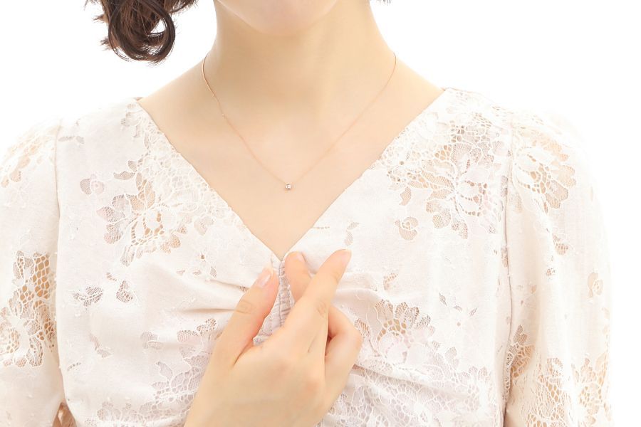 まるで、ダイヤモンドがそのまま、肌に溶け込むかのように馴染みやすく、デコルテからあなたの華やかさをもっと、引き出してくれます。上品さ、可愛らしさ、繊細さ…すべての『女性らしさ』を、ダイヤモンドの輝きに詰め込んだ、着けるたび好きになるような、タイムレスなアイテムでございます。