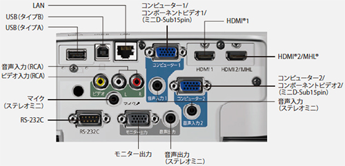 IN:ミニD-Sub 15pin、RCA、HDMI/MHL