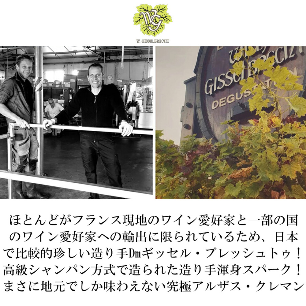 まさに地元でしか味わえない究極アルザス・クレマン!アルザスの名門W.ギッセルブレッシュトゥより高級感のあるクレマン・ダルザスが新登場!