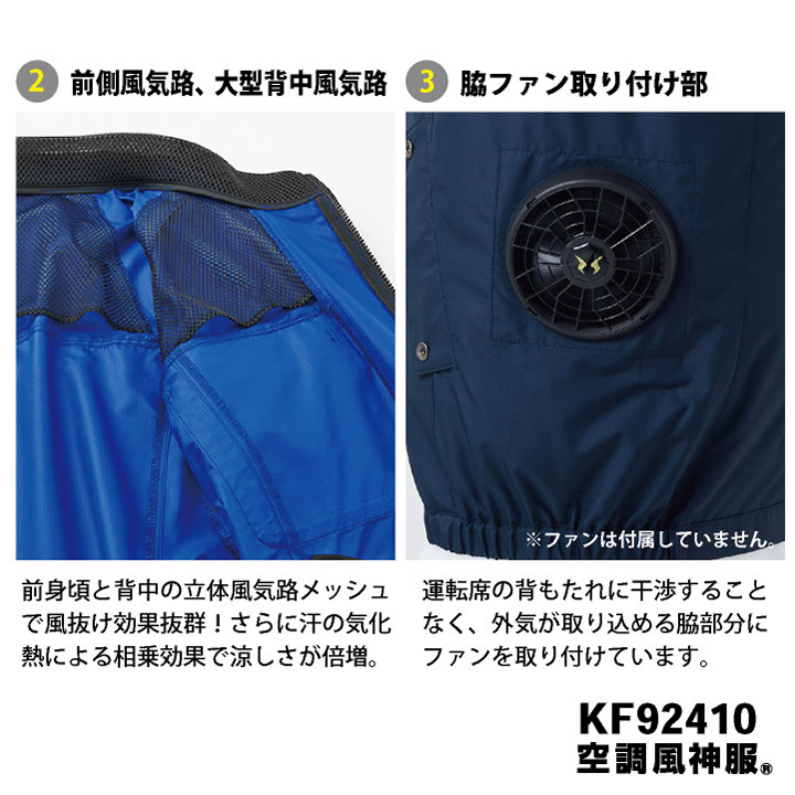サンエス 空調風神服 空調作業服 サイドファン ブルゾン ジャケット 半袖 春夏 服単品 メンズ レディース 涼しい 4L 5L 大きいサイズ 空調ウェア ss-kf92410-t