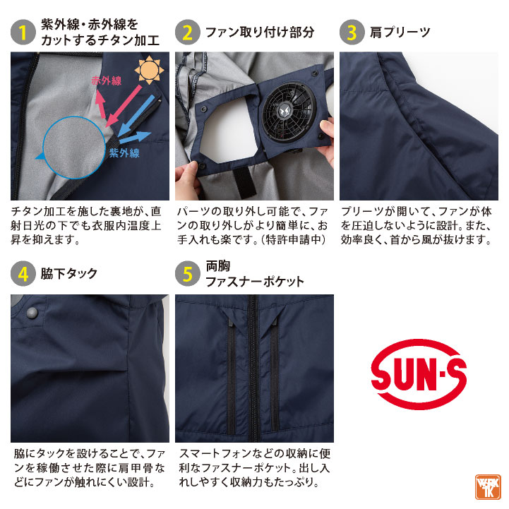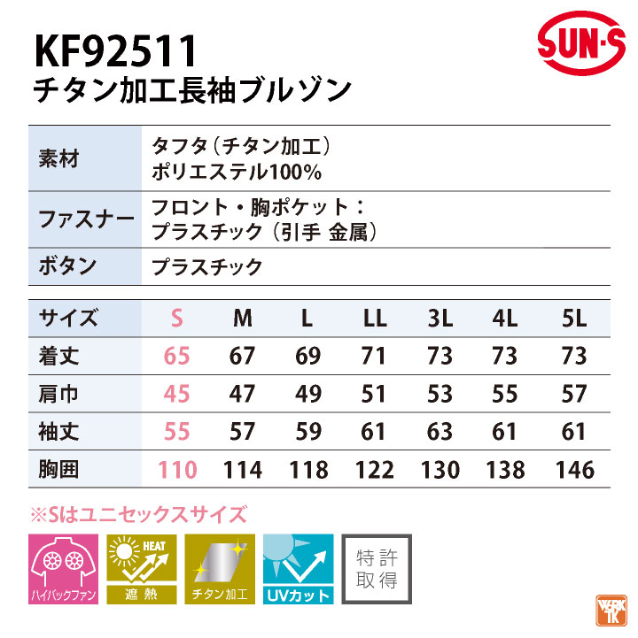 KF92511 SUN-S 空調風神服 服のみ チタン加工長袖ブルゾン 背中上部にファンを設置!ハイバック仕様 背中から全体に風が巡り、首と脇下から風が抜ける! ・モニターにより実際の色と多少ちがって見えることがあります。人気商品のため、商品在庫が欠品することがあります。