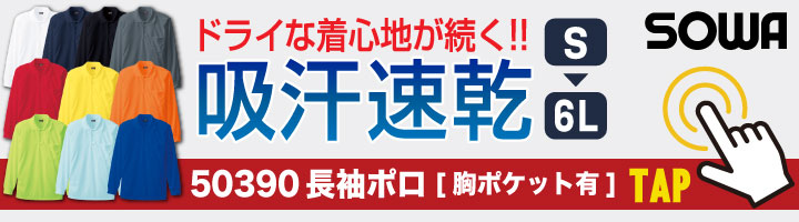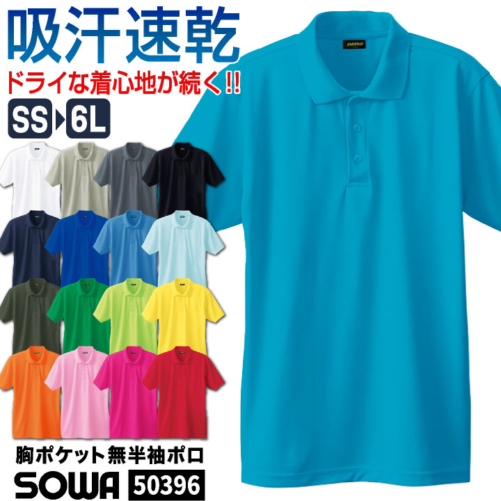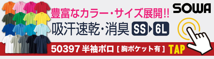 50396 SOWA 半袖ポロシャツ 胸ポケットなし ドライ+デオドラント 吸汗速乾加工で続くドライな着心地!