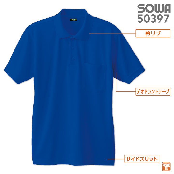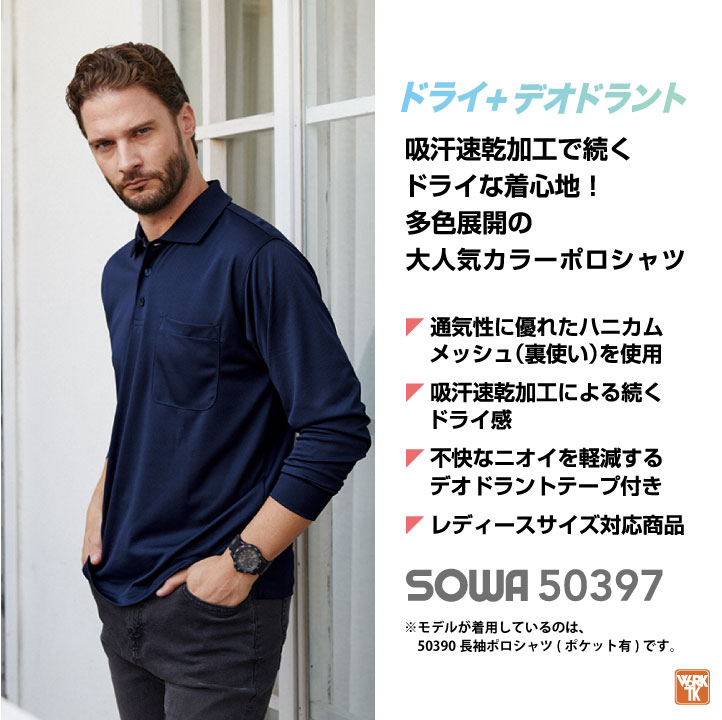 SOWA ドライ ポロシャツ 半袖 吸汗速乾 消臭 無地 メッシュ 春夏 秋冬 作業服 作業着 制服 スポーツ ゴルフ メンズ レディース 大きいサイズ 桑和 sw-50397-b