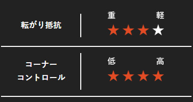 サイプを施したセンタートレッドは、転がりの軽さをもたらし ブレーキング時のヨレを防ぎます。