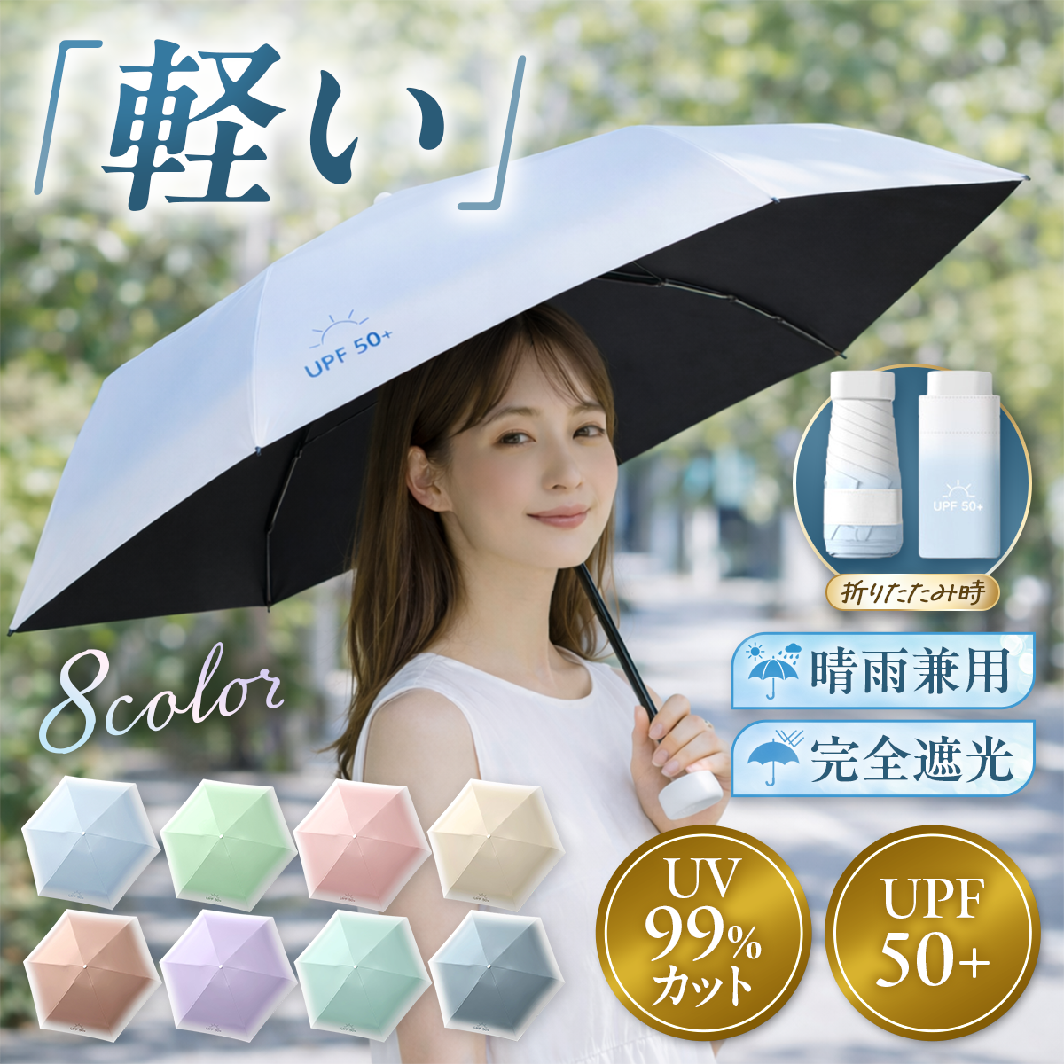 折りたたみ傘 軽量 225g 晴雨兼用 日傘 完全遮光 99%UVカット コンパクト レディース メンズ 子供 6本骨 小さい 撥水 おしゃれ 男女兼用