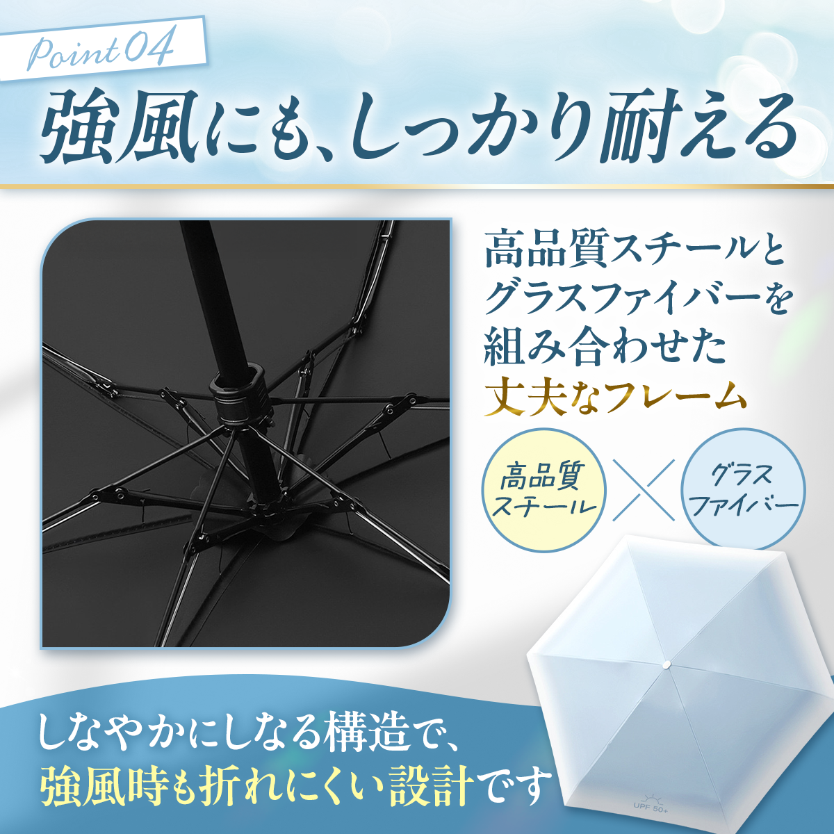 6本骨構造で軽さと強度を両立しています。