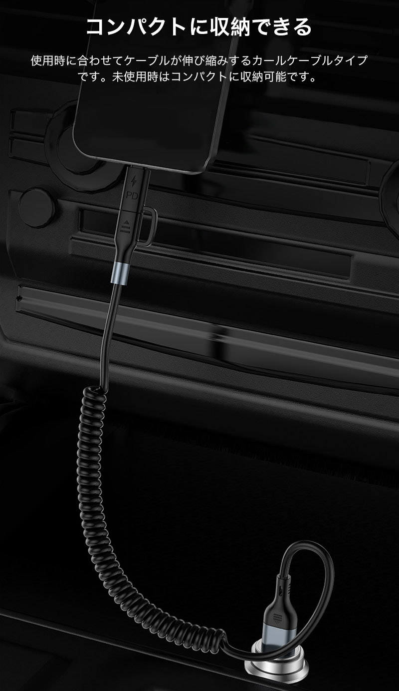 必要に応じて伸縮自在!Type-Cカールケーブル!