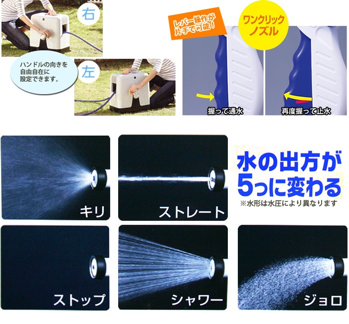 水の出方が5つに変わります。(キリ、ストレート、ストップ、ジョロ、シャワー)