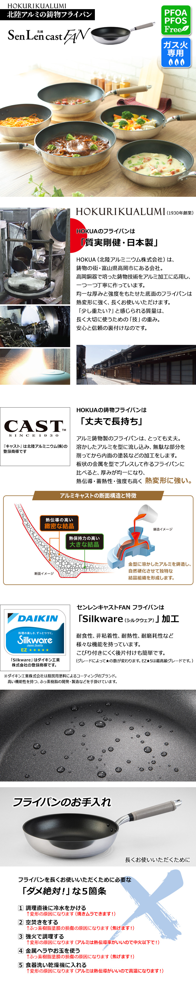 丈夫で長持ち!日本製で鋳物のガス火専用フライパン「SenLen cast FAN」シリーズ。