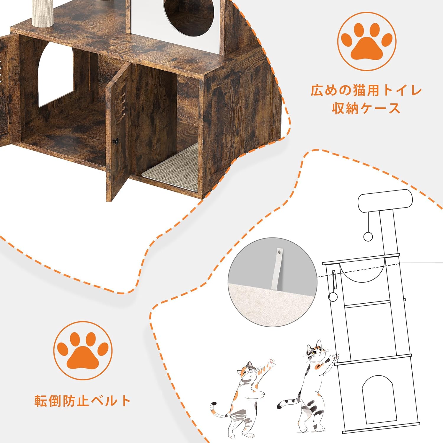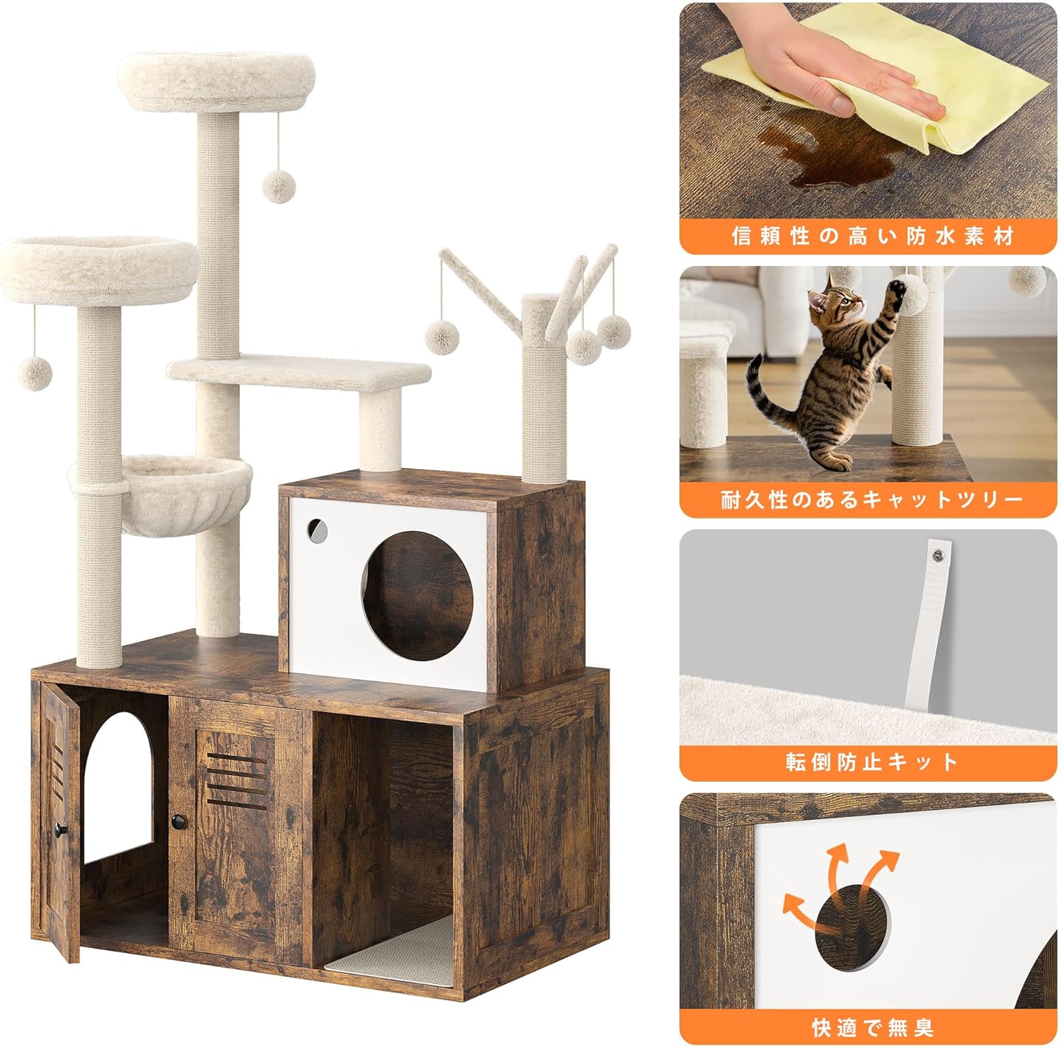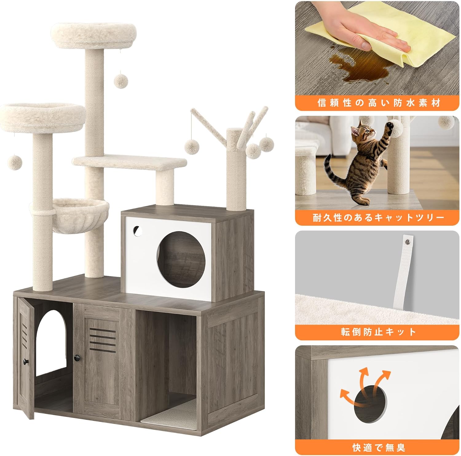 猫砂収納キャビネット 猫タワー 猫トイレ収納 猫トイレカバー 木製 収納付き ニオイ軽減 目隠しデザイン 猫家具