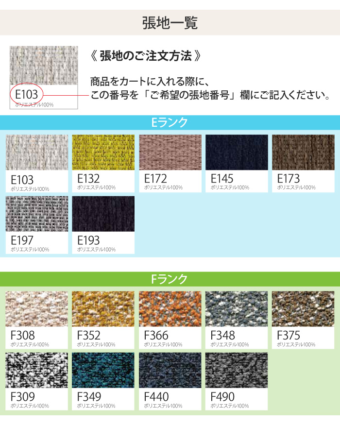 張地:ポリエステル100%(一部張地はポリエステル88%・アクリル12%)
