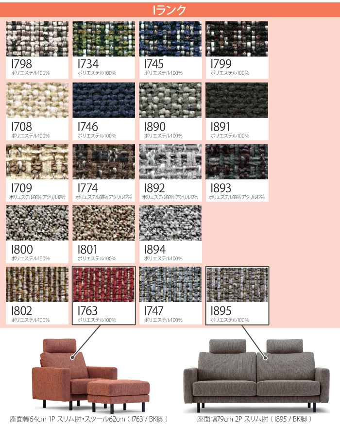 ・座面幅79cm スリム肘