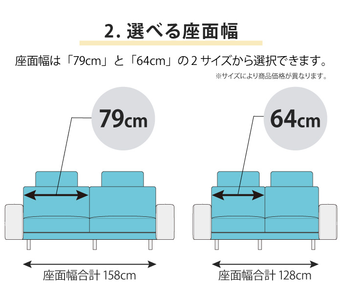 ・座面の幅は「幅79cm」「幅64cm」の2サイズから選べます。