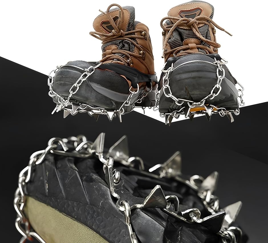 アイゼン 登山 24本爪 軽量 チェーンスパイク 3秒着脱 凍結道路 滑り止め 雪山 ハイキング 穴釣り 磯釣り (ブラック, M)