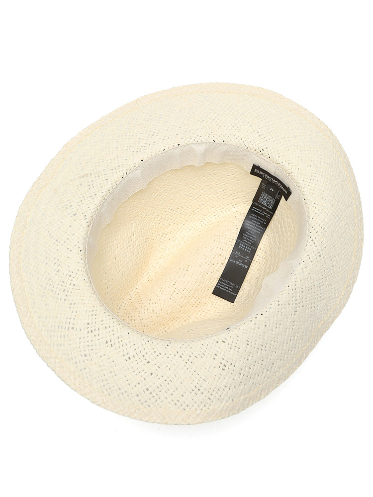 EMPORIO ARMANIのストローハット。上品なデザインと高品質な素材で知られる。夏の暑い日に涼しく快適に過ごせるアクセサリー。ファッションアイテムとしても優れた選択肢。