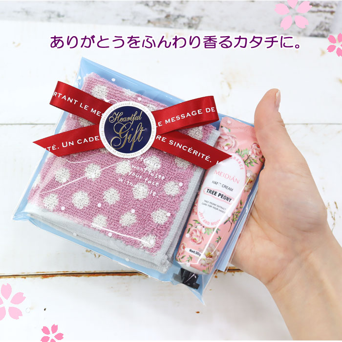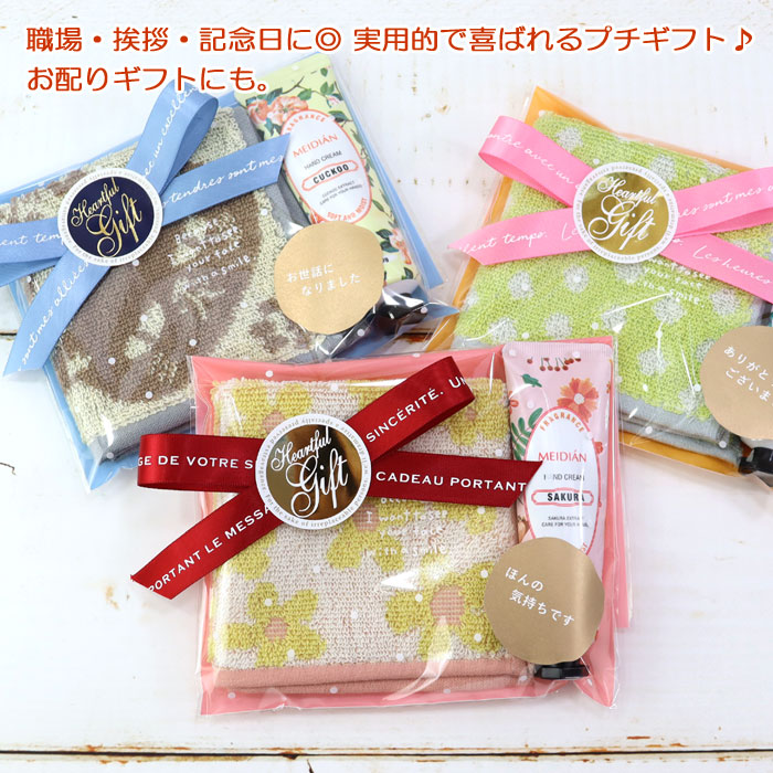 2点 ギフトセット かわいい ラッピング済 ミニハンカチ タオル ハンドクリーム 350円 退職 お礼 お返し バラまき 大量注文 まとめ買い ab-597800a