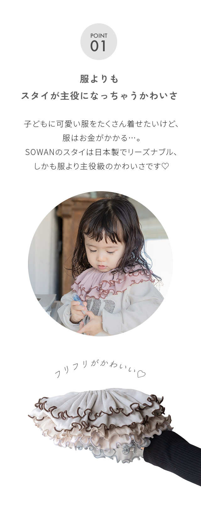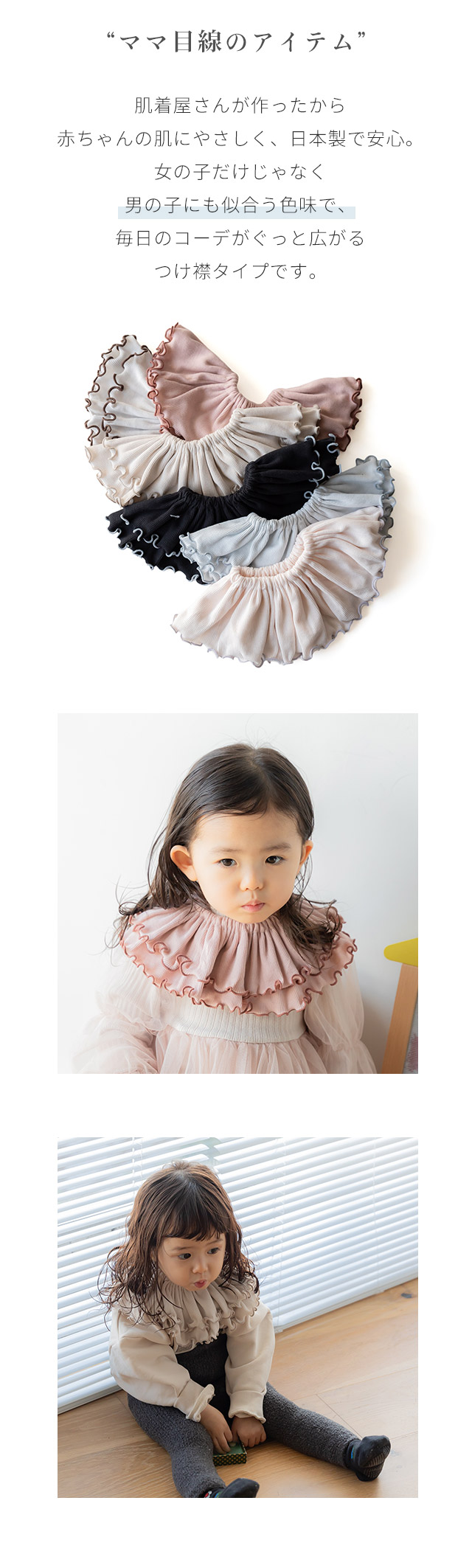 2枚セット フリルカラー スタイ 女の子 男の子 日本製 コットン つけ襟 360度フリル よだれカバー ブランド おしゃれ ベビー 出産準備 出産祝い ギフト リブ