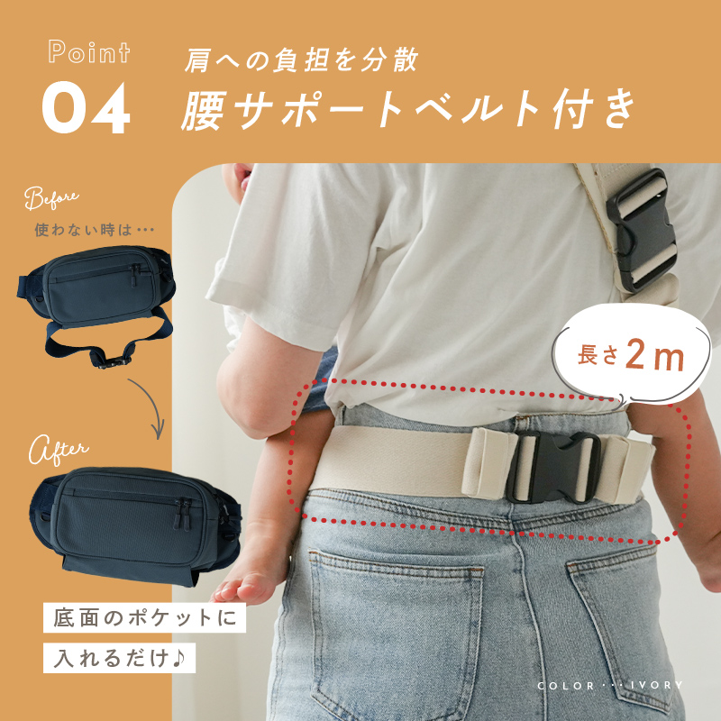 赤ちゃん ボディバッグ 抱っこひも 滑り止め付 ウエストポーチ