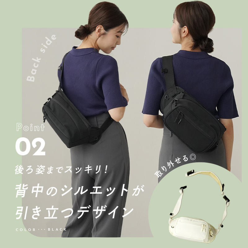ショルダーベルトだけでなく、腰ベルトをつけることで