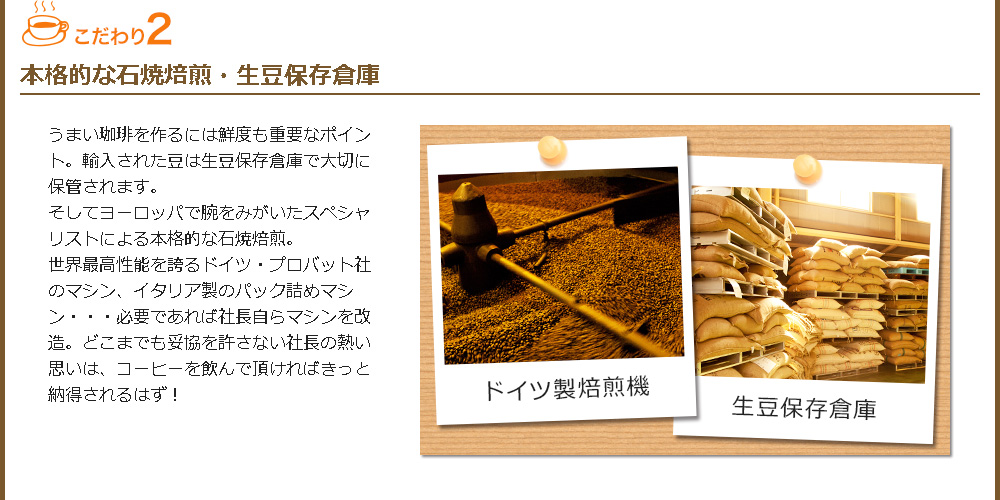 チラシでの通販時代から、彼是10年以上のファンです。ヨーロッパ系の苦みあるタイプが好みの我が家ではたまに他の物を買ってもすぐにこれに舞い戻ります。安いと謳うコーヒーを見てもこのレベルの物でこの値段は遭遇したことがありません、これからもリピートし続けます。(たったら1号様)