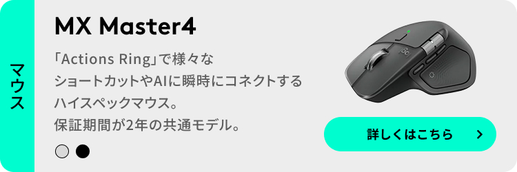 また、ロジクール製品のマウスとして初となる、動作・ショートカット・通知に応じて親指エリアが細やかに振動する触覚フィードバック機能を搭載し、直感的な操作を実現します。「MX MASTER 4」は、ソフトウェアとハードウェア双方の進化により、ユーザーの創造性と生産性を次のレベルへと引き上げます。