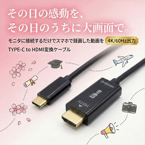 HDMI入力端子搭載のディスプレイに映像を出力可能なケーブルです。