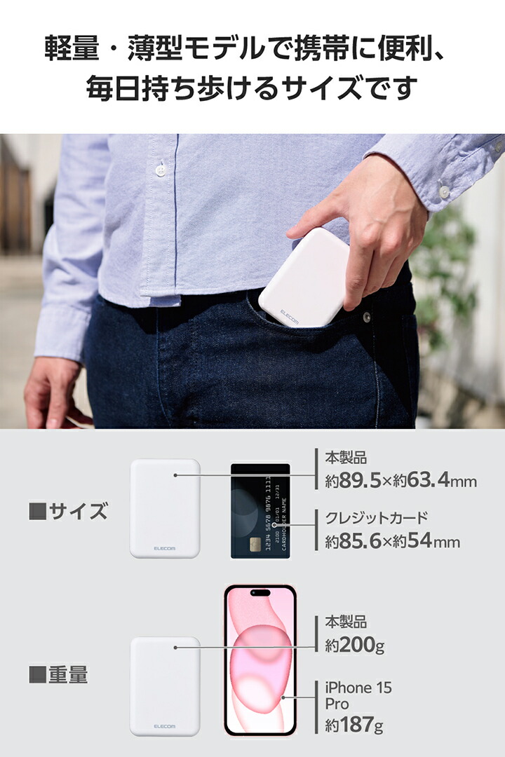 ■小さくて軽く、持ち運びにぴったり。15W出力、容量10000mAhのコンパクトなモバイルバッテリーです。