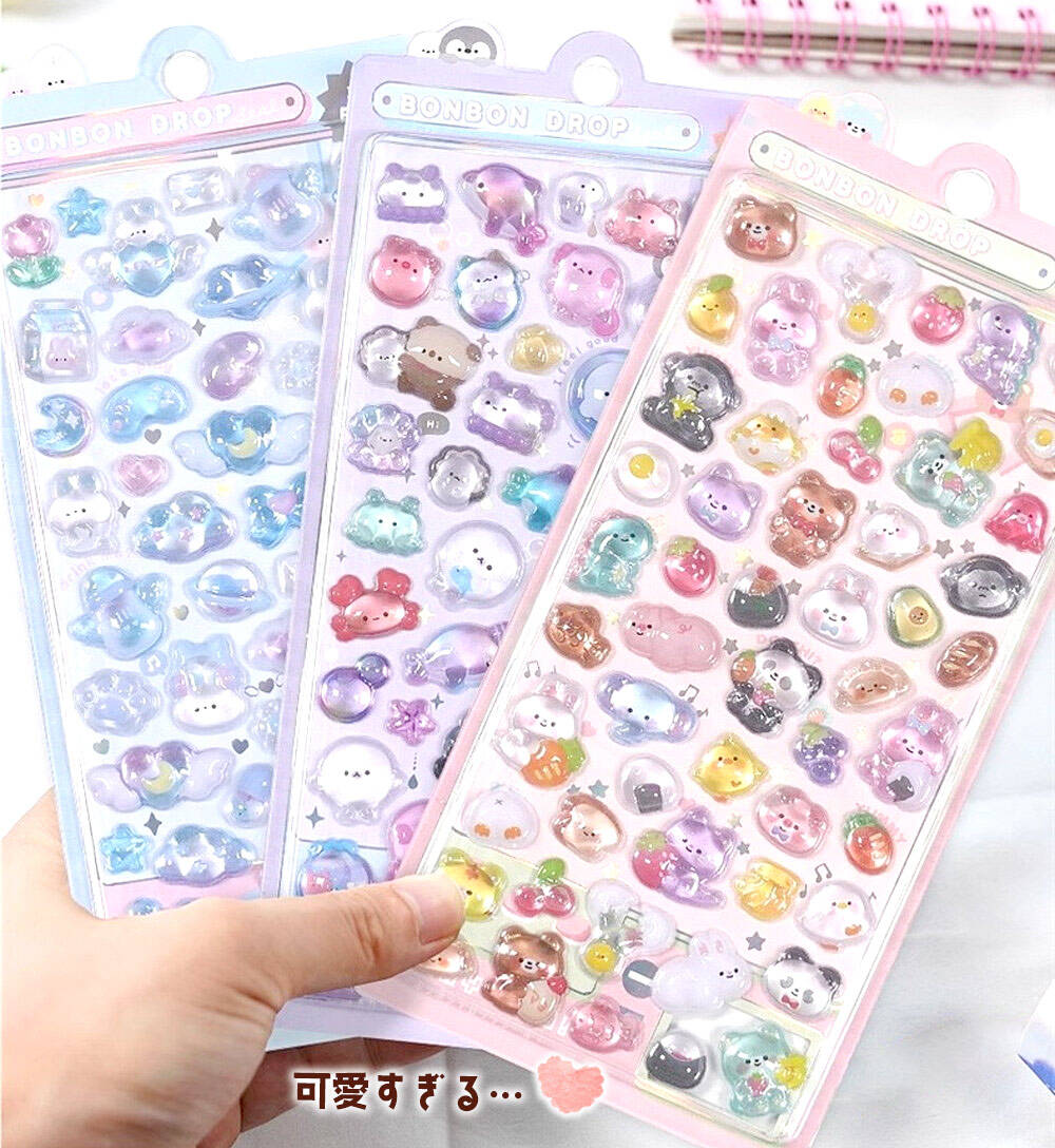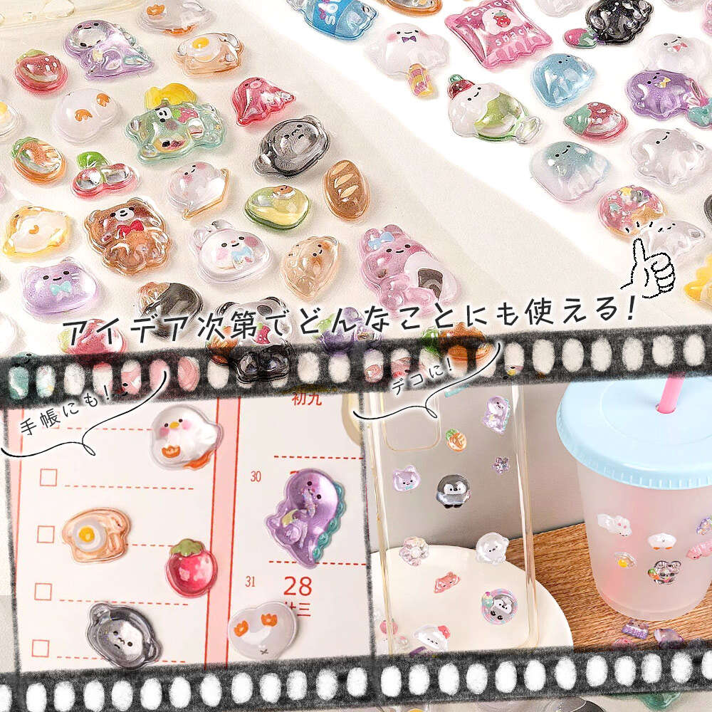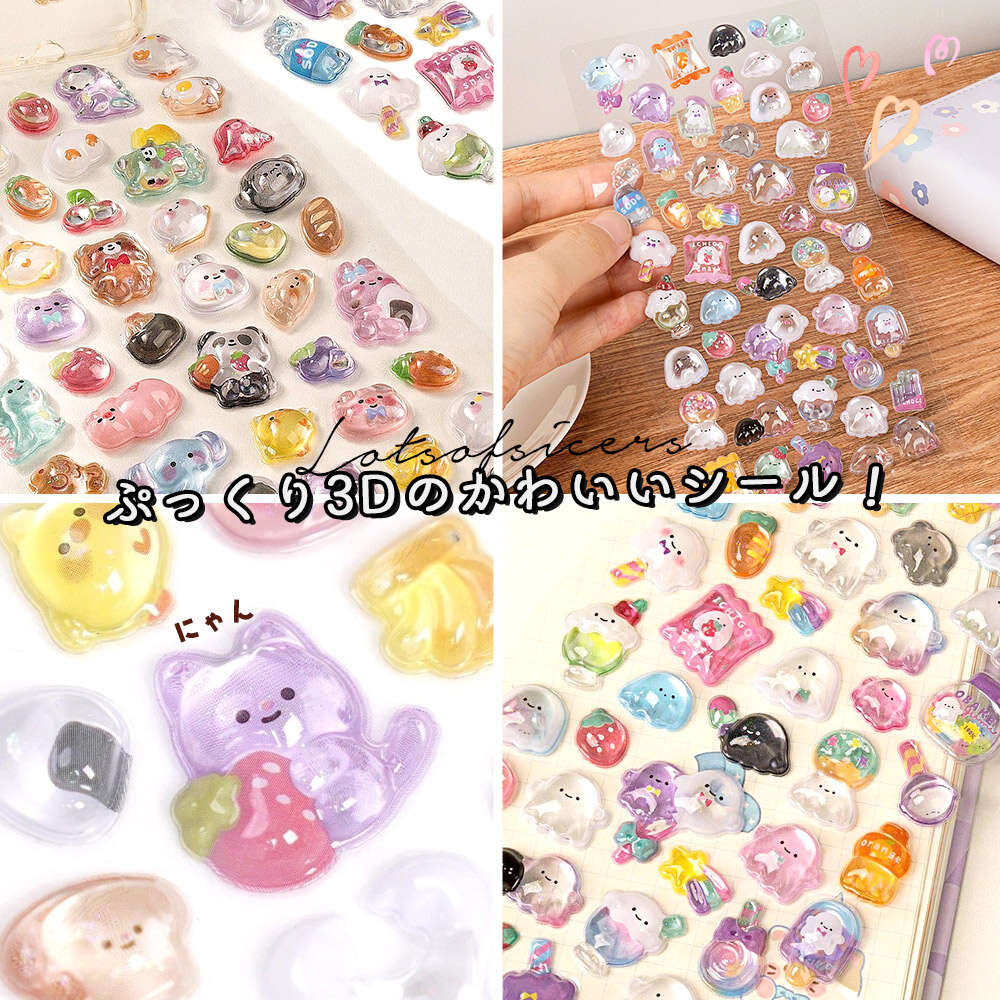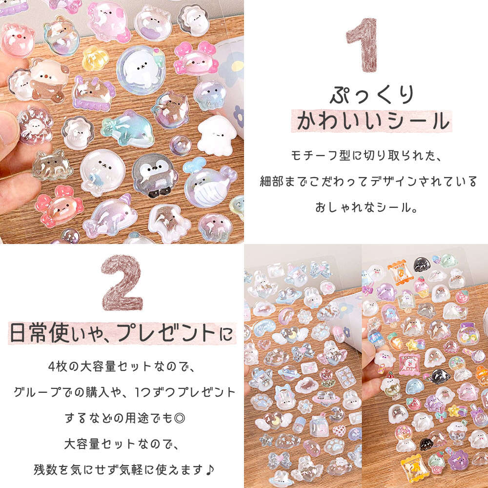 【 キラキラ&ぷっくり3Dの、美しいシール 】モチーフ型に切り取られた、細部までこだわってデザインされているおしゃれなシール。猫やうさぎ、くま、ぞうなど、動物園のようなわくわくするモチーフが盛りだくさん。